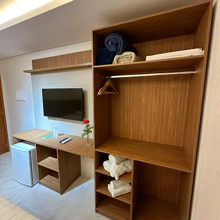 Um pequeno-almoço bufê é fornecido diariamente. Os hóspedes podem experimentar diner, normalmente servido num dos restaurantes no local, por exemplo no restaurante Baixa Verde. Tem a pizzaria que serve comida Braziliaanse a 12 minutos a pé.